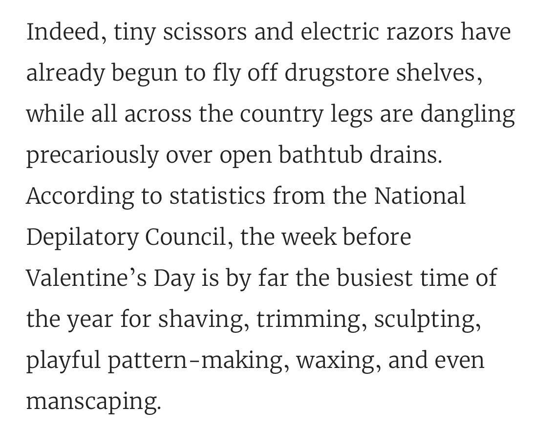 Valentine’s Day is Friday. Don’t wait until the last minute to get a Brazilian or it’ll feel like fire in your lady parts.