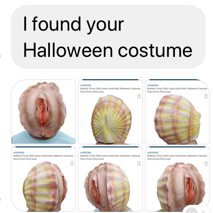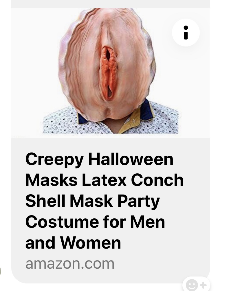 This is another view of the conch mask that was suggested by several of my followers that I wear for Halloween. See, it really is a shell and not a vagina!